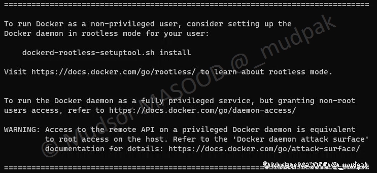 Il est recommandé de ne pas utiliser Docker avec un compte root, à la place vous pouvez suivre la bonne pratique décrite ci-dessous.