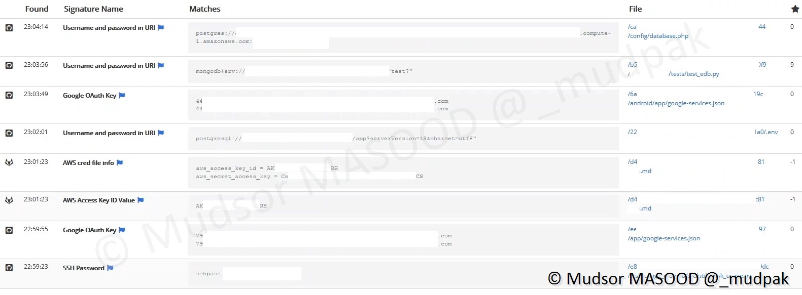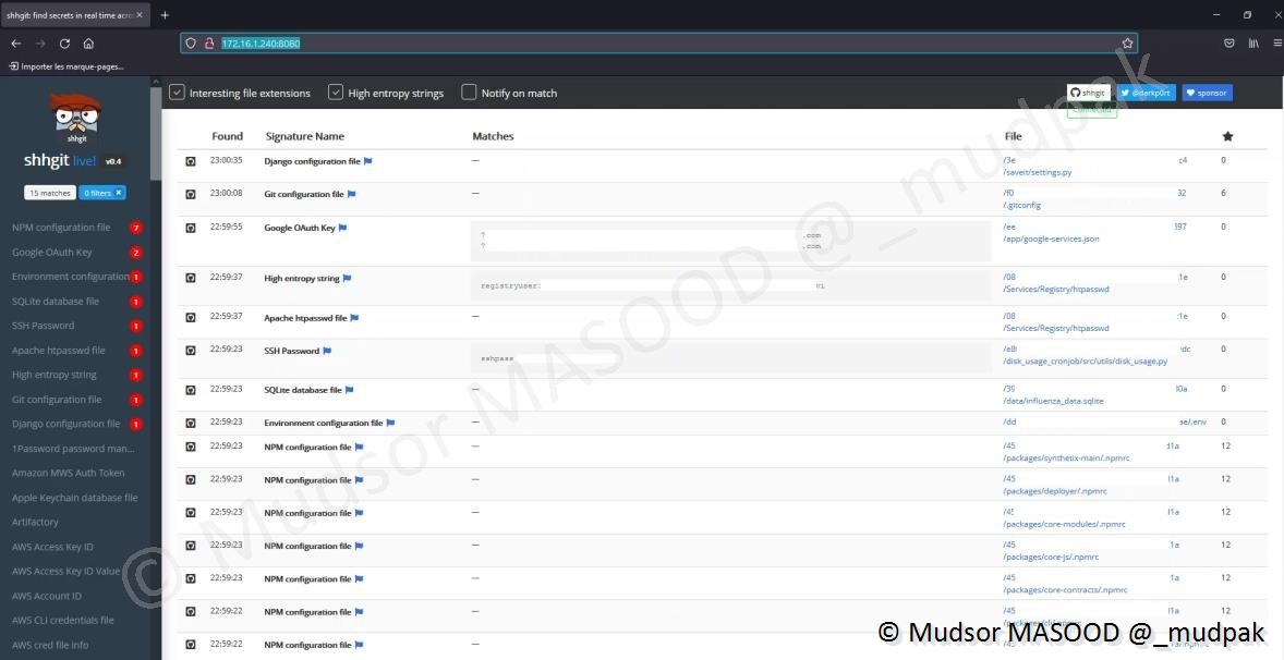 Nous avons vu le cas où on peut attendre que shhgit scanne les dépôts publics et on peut trouver tous types d’éléments sensibles.