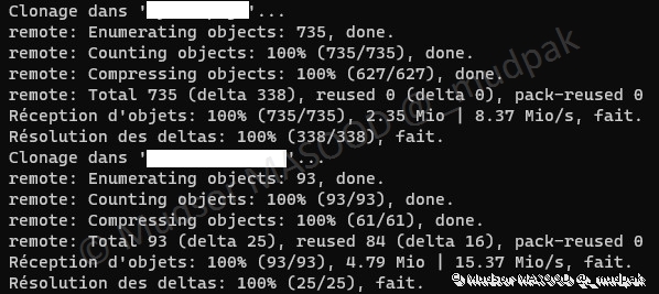 Comme vous pouvez le constater la commande « git clone » est utilisée :